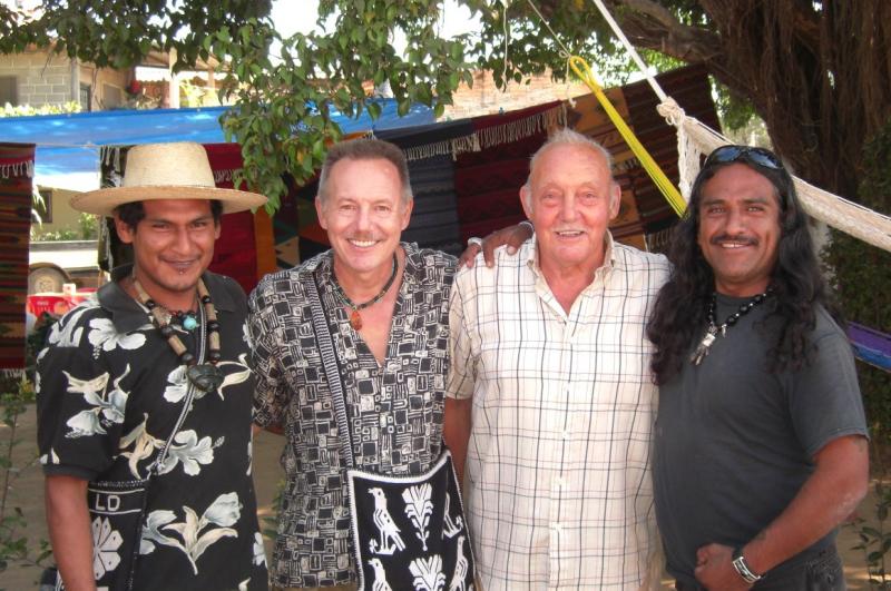 Old Gringo and son of Old Gringo with good friends Jose (L) and Gabo (R) in La Penita Market, State of Nayarit, Mexico
